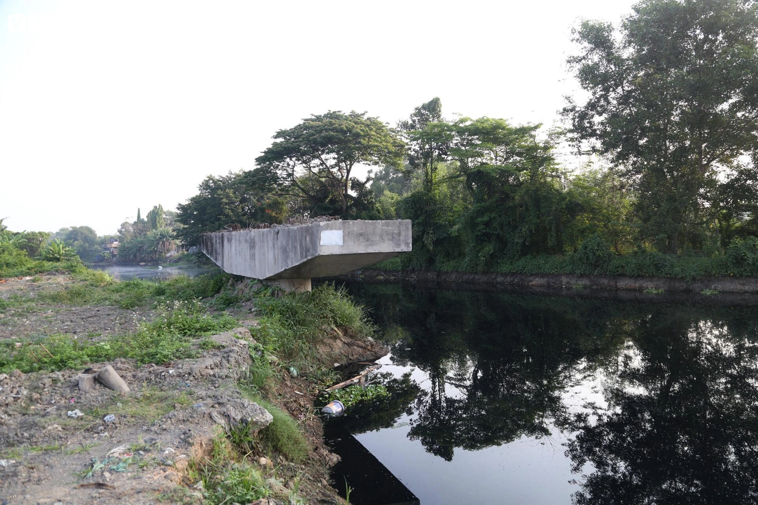 Tại điểm đầu tuyến, một số trụ cầu xây dựng dang dở đã xuống cấp.