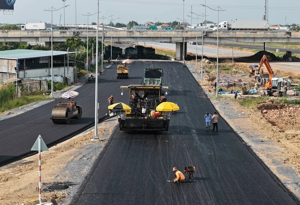 Nối tiếp là đoạn đường kết nối giữa Vành đai 3 và cao tốc Bến Lức - Long Thành hiện được thảm nhựa gần hoàn chỉnh.