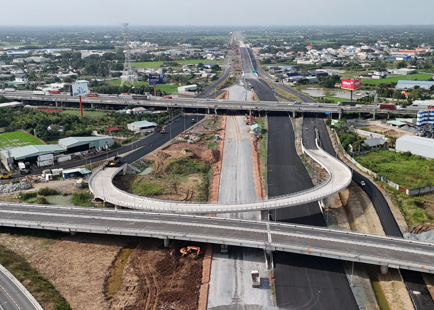 Một nhánh hình vòng cung, kết nối vào Vành đai 3 và cao tốc Bến Lức - Long Thành đã hoàn thành căn bản các trụ cầu, đổ bêtông mặt đường, hệ thống lan can, chiếu sáng.